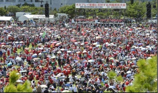 美军部署“鱼鹰”惹毛冲绳民众10万人抗议
