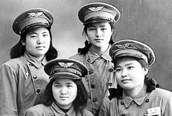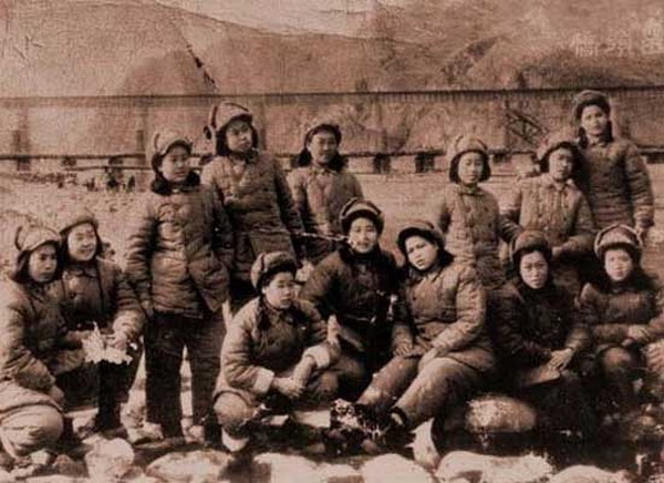 1950年:鸭绿江畔,即将奔赴前线的13名解放军女兵合影留念。