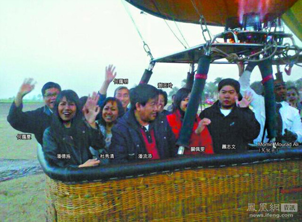 一个载有大约20名游客的热气球26日在埃及南部旅游城市卢克索爆炸,致19人丧生,包括9名中国香港游客。图为9名港人升空一刻的照片。