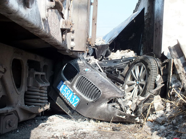 哈尔滨 宝马撞火车!(1)(2)