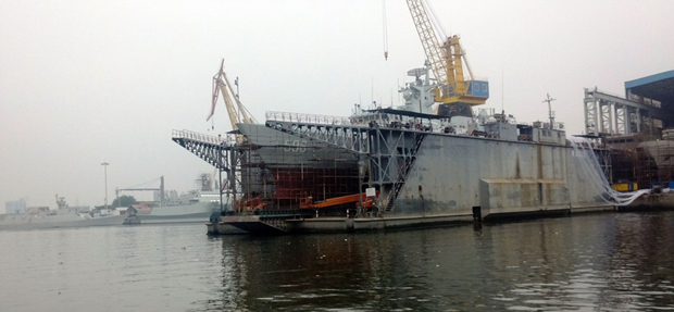 据悉,该型舰的另外一艘已经涂上了编号为“596”的舷号,或将于近期交付。