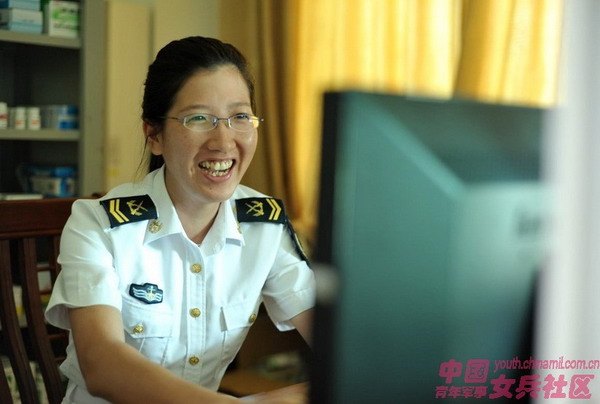 龚天琴为西沙女兵巡诊。