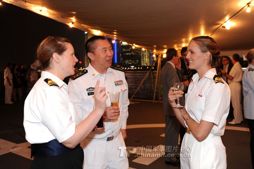 澳女兵甲板上烤肉招待招待中国海军(1)